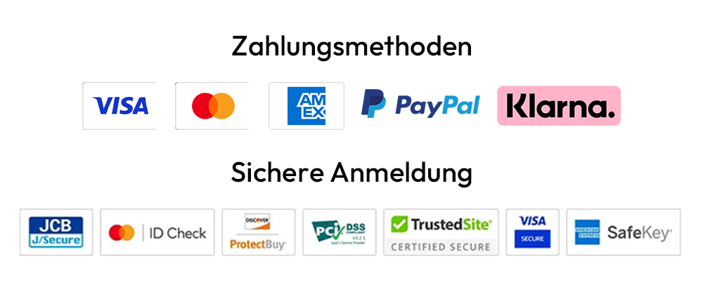 Innerhalb eines bestimmten Zeitrahmens können berechtigte Kunden mit Klarna bezahlen. Für Details klicken Sie bitte hier, und für häufig gestellte Fragen hier.